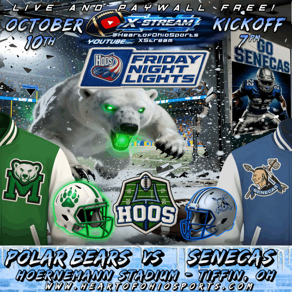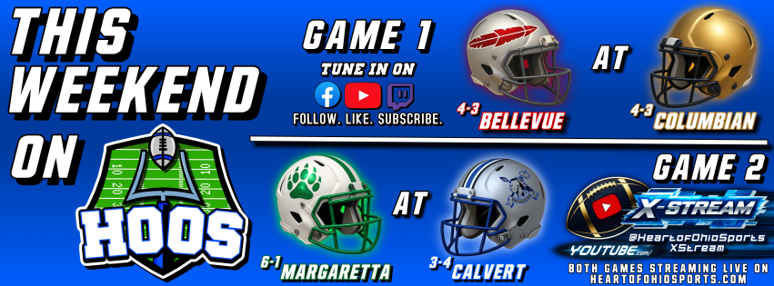 Meanwhile, on the X Stream, Nate Mullins, Zack Dillon, Jacob Ellis, Brendon Blott, and Emma Moeglin deliver another thrilling week 8 matchup as the 6-1 (4-0) Margaretta Polar Bears invade the campus of Heidelberg University to take on the 3-4 (2-2) Calvert Senecas LIVE at Hoernemann Stadium!
