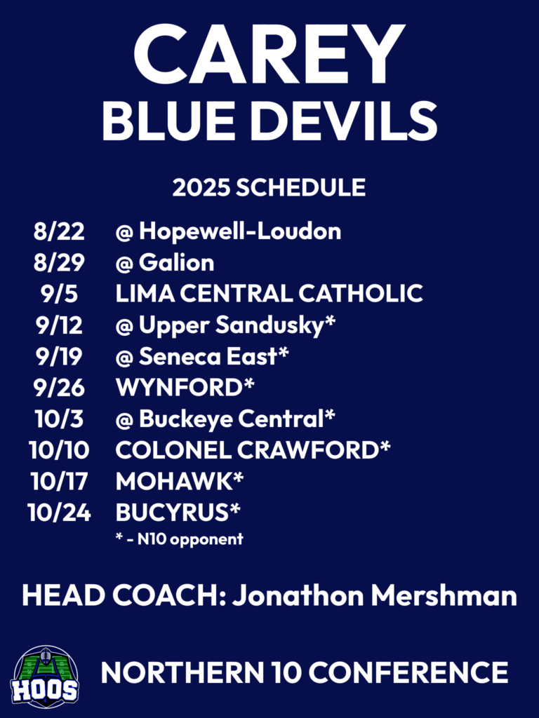 Aside from the tough opener with Hopewell-Loudon, Carey is going to need to bring their A-game every week in a top heavy N10 conference.